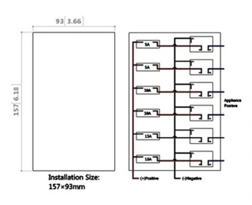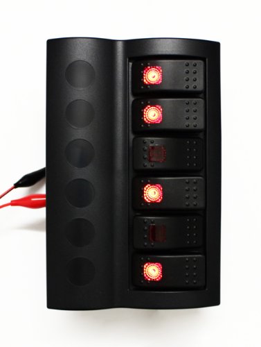 This is a 6 Gang waterproof switch panel with 6 circuit breakers. 40 preprinted labels will be provided.