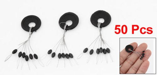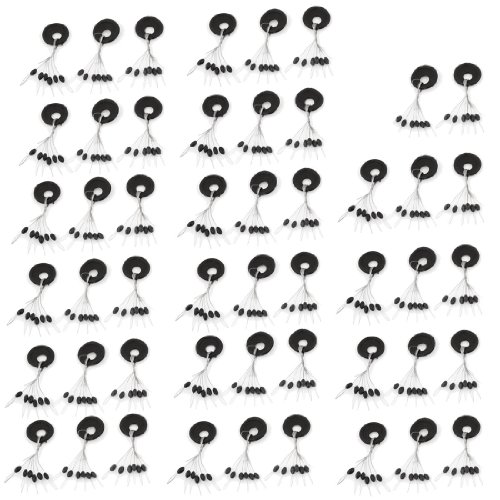- 50 pcs 6 in 1 fishing bobber stoppers, options black plastic ring, ellipse form black rubber stopper.