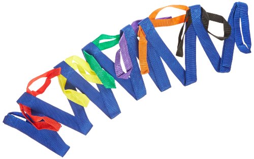 Made of sturdy nylon webbing, it has 12 colorful handles for children to hold in addition to front and back handles for teachers to share with a child.