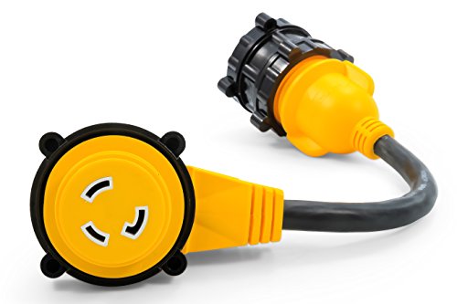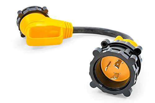 Camco’s RV Power Grip 90 degree 30 AMP female locking / 30 AMP male locking dogbone adapter lets you connect your marine-taste 30 AMP RV power inlet to a marine taste power supply. It includes a 30 AMP locking male end and a 90 degree 30 AMP locking female end. The 90 degree connector reduces strain at the cord and permits more uncomplicated connection in tight places. The threaded locking ring creates a weatherproof connection. It’s 18″ long and contours the patented Power Grip care for for ease of use.