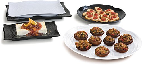 This Carlisle 4452402 white melamine textured rectangular display platter with curved edges is 1.75″ high and measures 18 x 12.5 inches (L x W). (L is length, the horizontal distance from left to right; W is width, the horizontal distance from front to back.) It’s manufactured from melamine for resistance to breakage, can face up to temperatures as much as 212 degrees F, is dishwasher-secure, and meets NSF International same old 2 for food equipment safety. This white melamine textured rectangular display platter with curved edges is appropriate to be used in deli and tabletop displays, at catered events, and in other food service settings.