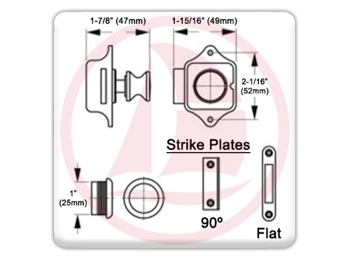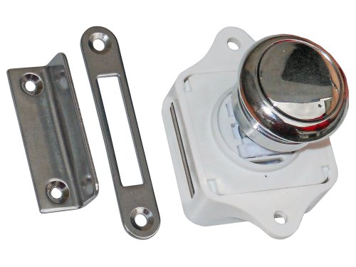 MARINE PUSH BUTTON CABINET RIM LATCH FOR BOAT, CARAVAN, RV – CHROME-PLATED BRASS – FIVE OCEANS ———————————————————————————– Push Button Cupboard Rim Latch Chrome-Plated Brass This 5 Oceans´ Push button Cupboard latch comes with brass button and ring to withstand the cruel marine atmosphere. It comes whole with Each strike plates. Each require #four FH fasteners.