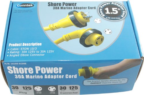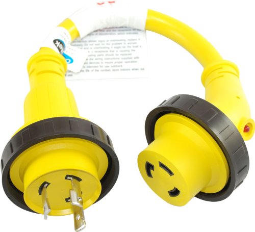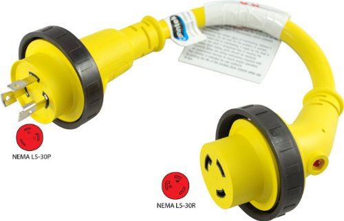 Proper Perspective Cordset Adapter. Shore Male Plug To 30 Amp Feminine Connector-Elbow