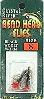 Crystal River Bead Head Flies Black Wooly Worm #8 Feathers