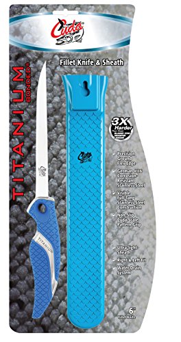 This Cuda 2 piece set includes a 6″ Flexible Fillet Knife with Titanium Bonded Blade and the Cuda ultra light Fisherman’s Sheath. The Sheath features a water draining system and a reversible loop for left or right fit. Fillet knife has full tang construction and Cuda scale pattern, non-slip handle.