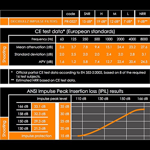 SOUND WHEN YOU WANT IT, PROTECTION WHEN YOU NEED IT: Developed for shooting and military use, the Decibullz Percussive Filters feature optimum protection from high level impulse and percussive sounds. The filters are ANSI IPIL certified up to 166 dB. When no damaging noise is present, the Decibullz Filters provide a low attenuation, permitting voice and ambient noise to be heard. The allows for situational awareness not provided by traditional hearing protection.