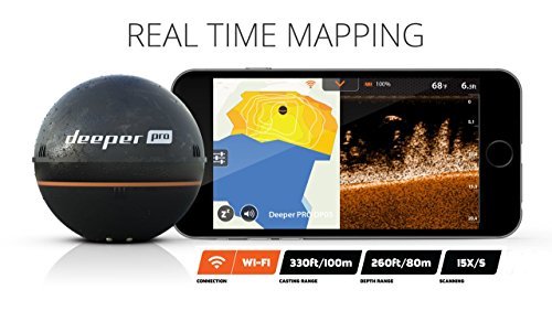 Deeper Smart sonar Pro is a wireless, cast able echo-sounder compatible with iOS and Android smartphones and tablets. Wi-Fi connection Enabled to maximize both the distance between the Deeper Smart sonar Pro and the device holder up to 330ft/100 M and the Depth range up to 260ft/80 M. Advanced high-frequency technology enables the Deeper Smart sonar Pro to quickly transfer more accurate data. The higher scanning frequency allows the device to capture faster moving objects and the scanning resolution measures smallest of objects – all to deliver the highest quality echo-sounder data available in a single, compact wireless unit. The Deeper Smart sonar Pro is the most valuable addition to your fishing gear. It is designed to scan the entire water column and mark fish, measure Depth, temperature, bottom structure and other valuable data points that are essential for productive fishing – then stream that information instantaneously to your Smartphone or tablet. The Deeper app offers advanced features such as real time mapping, unlimited data history and ice fishing mode to make your Deeper Smart sonar Pro useful for all fishing conditions.