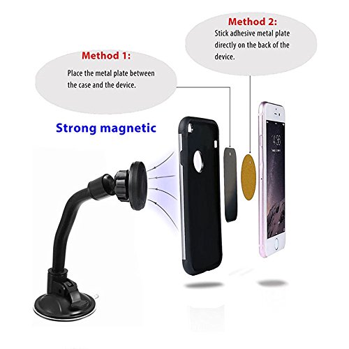 EAGWELL Magnetic Cradle-less Windshield Flexible Car Mount Holder Cell Phone Holder Stand Car Accessories for iPhone, Samsung, LG, Nexus, HTC, Motorola, Sony and Other Smartphones- Black