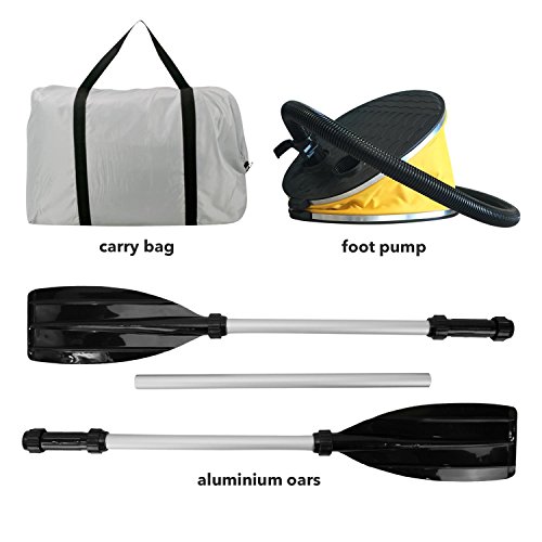 ACCESSORIES INCLUDED- Includes the entire fishing kayak accessories you want to hit the water including 2 Adjustable Seats, Rod Holders(2 Vertical & 4 Trolling), Double Sided Oars, Foot Pump, Repair Kit & Carry Bag!