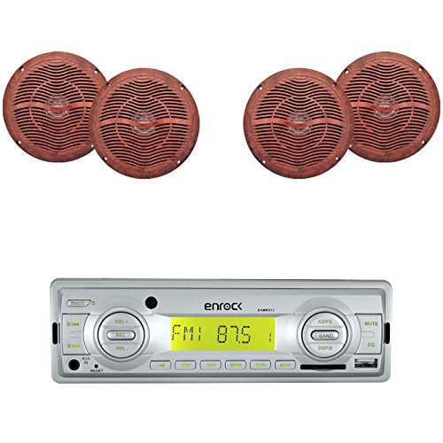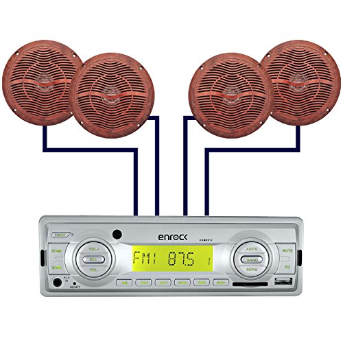 EnrockMarine EKMRS12-2XEKMSF66 Cycle ATV Car Marine Waterproof Stereo AM/FM Radio 4 Marine Speakers Antenna