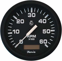 Euro Black 4″ Tachometer with Hourmeter – 6,000 RPM (Gas – Inboard)