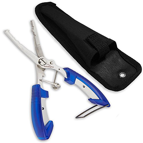 Fishing Pliers 6.5 Inch, Stainless Steel Long Needle Nose for Split Ring, Sharp Line Cutter, Sheath, Kayak or Boat Accessories, Compact Lightweight Gear by The Fishing Tree