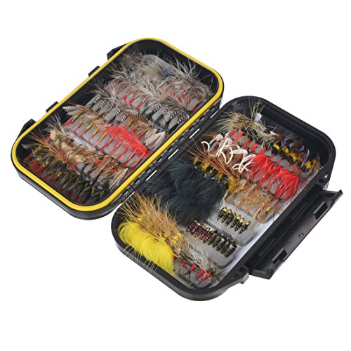 FishingSir Trout Fly Fishing Flies – Dry Flies, Wet Flies, Nymph, Streamer and Emerger Fly Lures + Double Side Waterproof Pocketed Fly Box