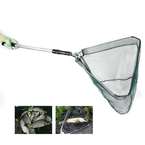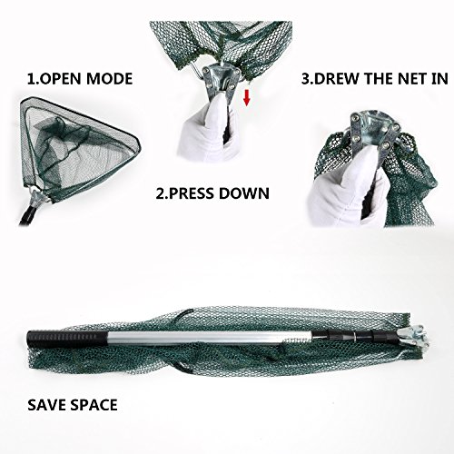 COLLAPSIBLE DESIGN: Folding fishing landing net with retractable pole, makes it easy to store and carry.