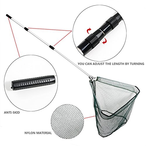 PRACTICAL FISHING ROD:3 session non-slip telescoping take care of offers strong bearing and transport capacity.Pressing the discharge button and hold the mesh bag along with your arm, raise it, which reseats into the slotted interior, locking it.