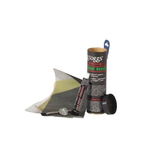 Prolong the life of your waterproof outerwear. The Frogg Togg ultimate repair kit contains everything you need to repair most types of waders and waterproof outerwear. The kit contains 4 material patches, adhesive, roughened and adhesive applicator.
