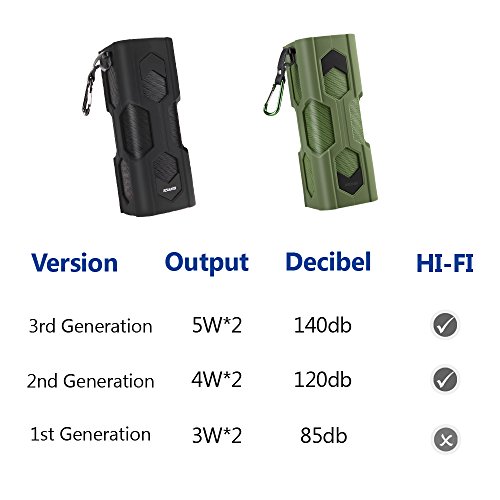 Advanced Bluetooth 4.0 and CSR chipset delivers crystal clear heavy-duty stereo sound, ensure a fast and steady connection in door or outdoor, the outstanding connection range ups to about 30 feet open field. Also, NFC supported (Near-field communication technology).