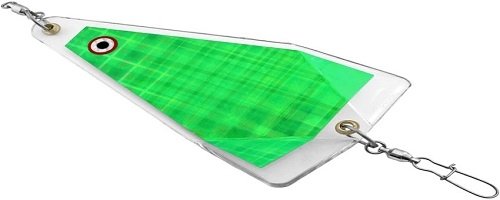 Gibbs Fish Witch flasher. Anglers right away bear in mind some great benefits of an attractor that rotates around and, places a super flash into the water, works at any speed, is just about drag free and really draws and catches more fish.