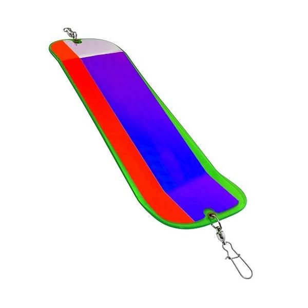 The “HIGHLINER” to its extensive arsenal of salmon lures. This rotating flasher is manufactured from the finest quality plastic resins. The “HIGHLINER” is fitted with welded jump rings, Ball Bearing Swivel and coast lock terminal snap. As the flasher rotates, it imparts a lifelike swimming and darting action to all baits and lures, Please refer to the “HIGHLINER” package for recommended leader lengths for the different salmon species.