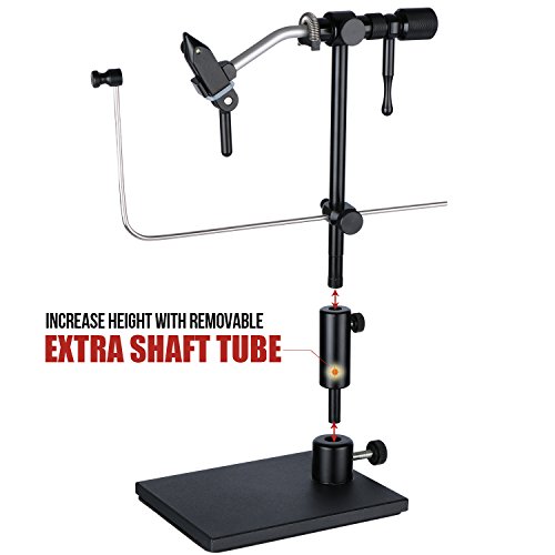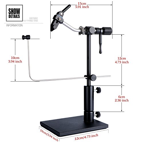 FLY TYING VISE WITH BASE: Designed with a heavy pedestal base, stand on the table and not out balance; A anti-skid pad attached on the bottom of the base, effectively prevent scratches the desktop; Item weight is 34 oz; Portable design for travel
