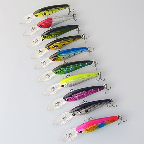 HappyFishing 10pcs/lot Mixed Minnow Fishing Lures Bass CrankBait Tackle 3.5inch 0.28oz