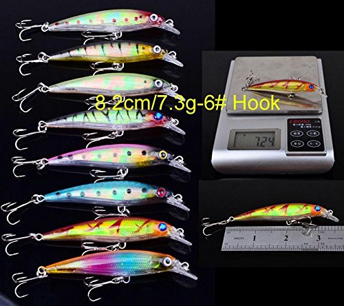 ✔Minnow Baits: 8.2cm/7.3g 6# Hook – Pack of 8 pcs