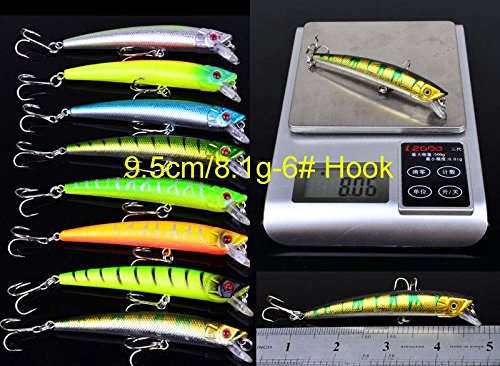 ✔Minnow Baits: 9.5cm/8.1g 6# Hook – Pack of 8 pcs