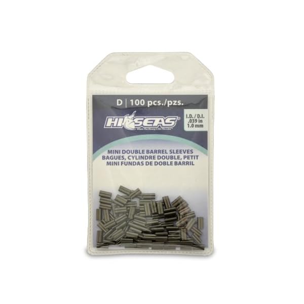 Mini Double-Barrel Sleeves, available in black finish, are excellent for use with big game mono leader material and can also be fitted to wire leader and other various lines. Burr-free nonabrasive finish combined with high strength and corrosion resistance makes HI-SEAS Sleeves the preferred choice of professional leader, lure, and tackle manufacturers.