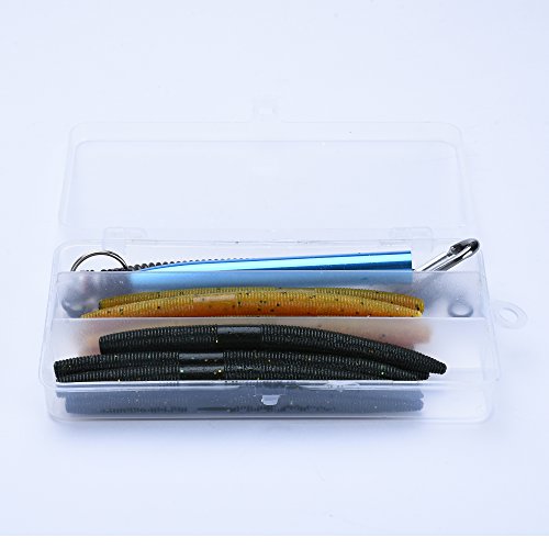 1.INCLUDE: 1 Wacky Rig Tool (Blue), 12 Stick Soft Lures Baits (Black+Brown), 20 Wacky Rig O-Rings