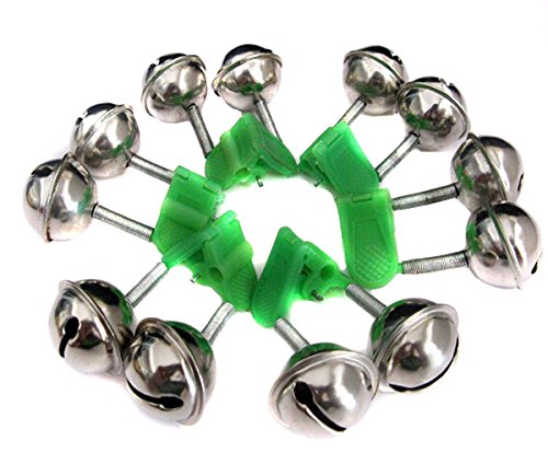 Honbay 20 Pcs Fishing Rod Alarm Dual Alert Bells Green Silver Tone