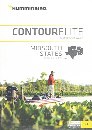 Humminbird Contour Elite- Midsouth States | Contour Elite | 600010-3. The Contour Elite Midsouth States Edition, Version 2 fishing computer software is designed to put you on fish. The Midsouth States Edition includes coverage in Texas, Oklahoma, Arkansas, and Louisiana. Cutting-edge mapping technology paired with the most accurate lake data available means you’ll be able to stop wandering around the lake. Believe finding a hot spot and in seconds your computer identifies all other areas of the lake with similar characteristics. Just enter a species, time of year, and time of day and your computer searches all the lake and provides you with exact fishing coordinates. Navigate to these areas the use of your GPS or even a laptop computer right on the water. Three key enhancements have been added to the new version. -Lake level adjustment: Contour depths and search results are adjusted based on water level. -Add waypoints in 3D view: Now you’ll be able to add waypoints even as viewing the lake in the 3D viewer. -Improvements in the find similar areas feature to provide more precise results. Compatible with Windows XP, Vista, Windows 7, Windows 8. Minimum PC Requirements: 1 Ghz Pentium 4 or Athlon CPU (2 Ghz really useful) 512 MB Ram (1024 MB Ram really useful) 10 GB Free hard drive Windows XP or greater DVD-ROM Drive NOTE: Contour Elite is a COMPUTER PRODUCT only, CD’s aren’t compatible with GPS units. Owners will only be capable of view the maps the use of a compatible computer. Only our DIGITAL SD MAP CARDS are compatible with Humminbird fish finders.
