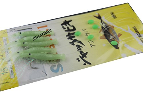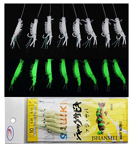 JSHANMEI 10 Packs Luminous Sabiki 5 Shrimp Rigs Glitter Glow in the Dark Fish Saltwater Fishing Bait Baits Lure Catch Catching Hook Tackle Fishing Rigs
