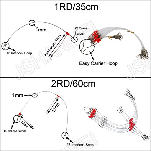 JSHANMEI 12pcs/lot Fishing Leaders Nylon Line Fishing Wire Rigs Leaders Trace Lures for Fishing Lure Spinner/Hook/Minnow/Poper/Crankbait/Metal Spoons/Hard lures. Complete with Swivel, Snap, Beads