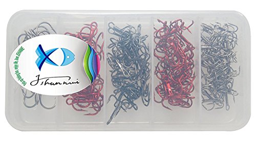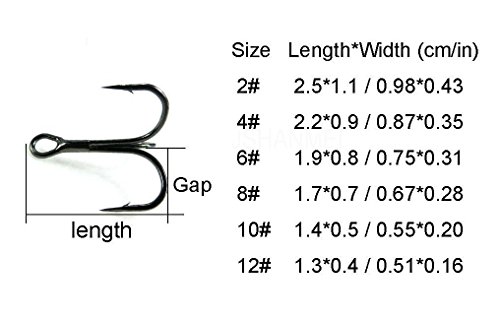 JSHANMEI 130Pcs/Lot Size #4 #6 #8 #10 Strong Treble Fishing Hooks High Carbon Steel Fishing Tools Hooks Tackles in Box for Lures Baits Classic Treble Fishhooks