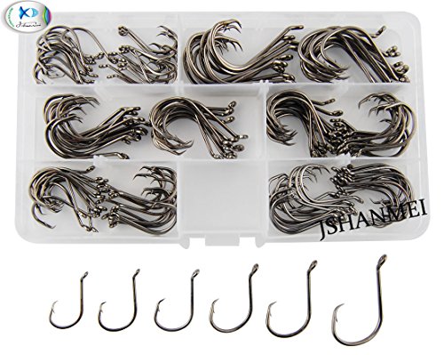 Package Included: 150pcs/lot, 25pcs each for size #1, 1/0, 2/0, 3/0, 4/0, 5/0 In A Reusable Plastic Box