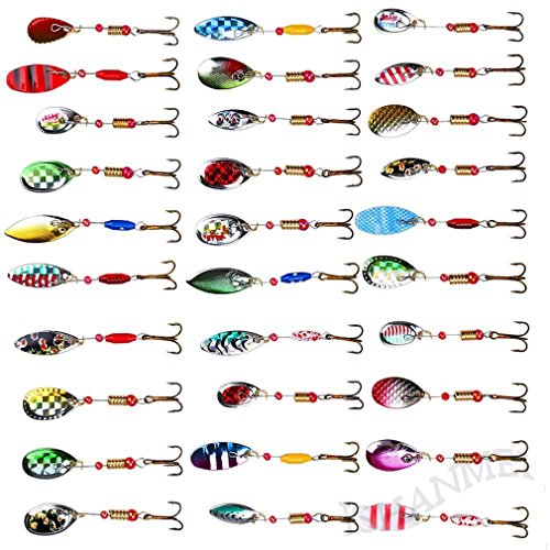JSHANMEI 30PCS Fishing Lure Kits Hard Artifical Lures Minnow Fishing Lures Metal Spoon Spinnerbaits CrankBait Bass Tackle Hook