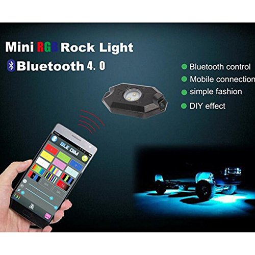 KAIL 9W 4 Pods Multicolor Neon LED Light Kit RGB LED Rock Lights with Bluetooth Controller Timing Function Music Mode