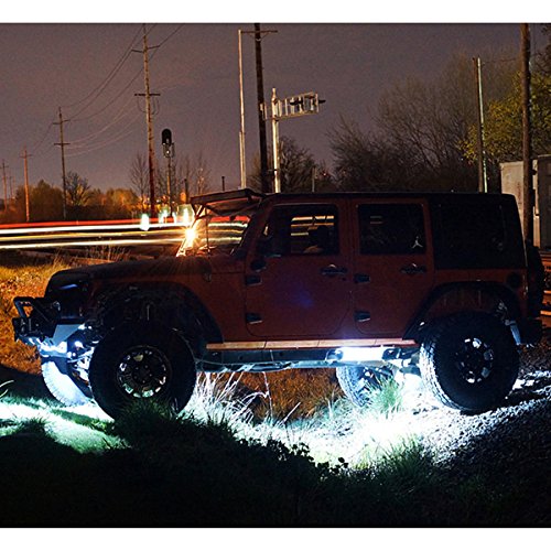 Having passed the CE certification and reach IP68 waterproof standard, the solid aluminum construction rock lights with toughed glass that make these lights highly resistant to impacts. The cords are made of superior quality with the length of 135.8 inches, long enough for more than a few the use of.