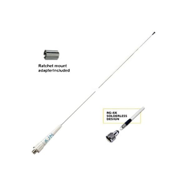 three’ chrome steel VHF antenna, Mfg# A430-VSS. Provided with ratchet mount adapter, 20′ rg-8x with solderless connections. Use Not obligatory ssmm-1 chrome steel mount for Masthead mounting.