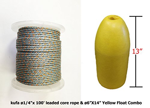 KUFA SPORTS 1/4″ Diameter/400′ Lead Core Rope & 14″ Yellow Float Combo