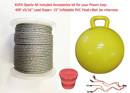 KUFA SPORTS All Included Prawn Trap Accessories/(5/16″ x 400″ Lead Core Rope)/15″ Float/Bait Jar/Harness Combo