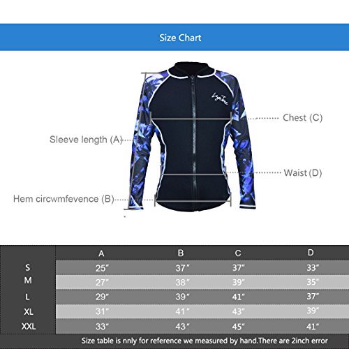 PLEASE NOTE:The wetsuit jacket size run bigger than regular size,please choose the best size after measuring your Chest/Waist and other data.