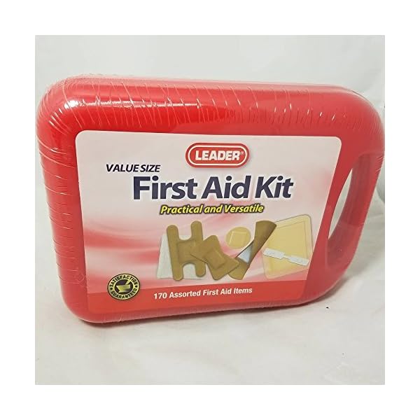 LEADER(TM) First Support Equipment 170 Piece 20 cleansing towelettes 81 material adhesive bandages 20 spherical spot bandages 10 heavy-responsibility material bandages 3 heavy-responsibility water resistant bandages 16 butterfly closures 4 medium adhesive pads 8 gauze pads 1 roll water resistant tape 1 eye patch 1 finger splint 2 vinyl exam gloves 1 plastic tweezers 1 transportable shuttle case