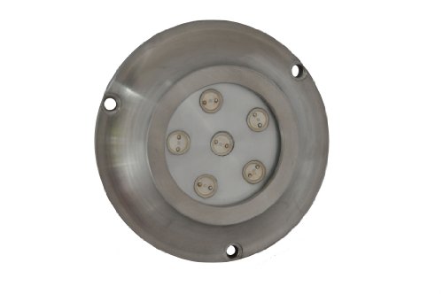 The housing is C&C machined from Stainless steel, and has a thick borosilicate glass lens over the 6 high output diodes. Our LED Puck light casts a beam of illuminate to 40 feet from the boat. Produces as much as 6000 lumens. Requires no holes be drilled on your boats hull, and may also be fastened with silicone, epoxy or with 3 stainless steel screws. If you don’t want to drill a hole on your hull, simply run the power wires up and over the transom.