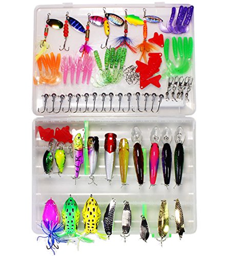 Soft silicone artificial baits with life-like bright colors to attract various big fishes, including bass, northern pike, salmon, trout and more; Hard lures with vivid 3D eyes and sharp treble hook helps you to catch fishes more easily