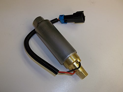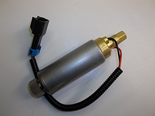 New low pressure fuel pump for plenty of Mercruiser carbureted engines. That is low pressure and has a threaded outlet end. The high pressure pump for fuel injected engines looks equivalent but does no longer have a threaded end, they don’t interchange. Advisable to switch fuel filter and pump in combination.