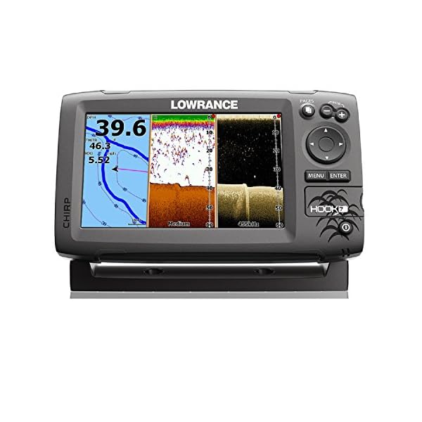 The Hook-7 combines the benefits of CHIRP sonar and DownScan Imaging technology to give you a clear and complete view of the underwater environment beneath your boat. It features enhanced sonar sensitivity, excellent target separation and superior noise rejection, making it easier to see baitfish and gamefish targets. With a built-in GPS antenna and proven navigation features, revisiting your favorite fishing spot is simple with the Hook-7, whether you use the base map, optional high definition Chart upgrades, or your own Insight genesis custom maps.