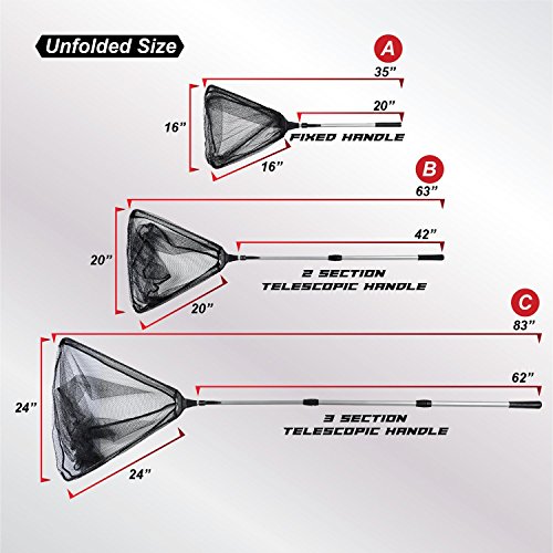 Size B: 20″/50cm for the side of net, 42″/106cm for the Maintain, 63″/160cm for total length after full extension(Two section Telescopic Maintain); 26″/66cm fully folded