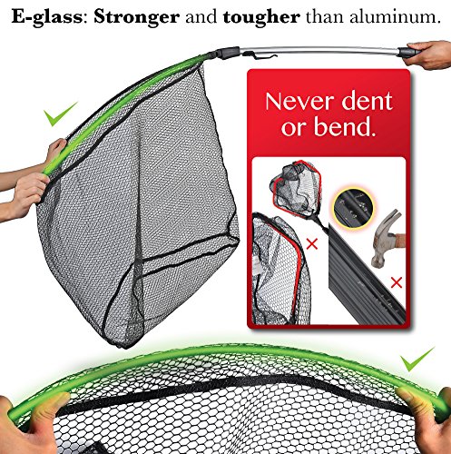 MadBite fish landing net hoop is made of tough, durable e-glass that withstands affect and won’t dent or bend like aluminum.