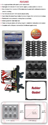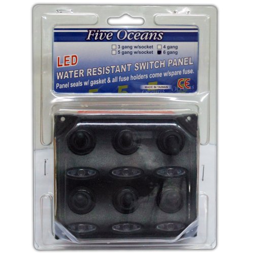 These Five Oceans´ new marine-grade boat 6 Toggle Switches with splash proof rubber boots, backlight LED Indicators & 15 Amp Fuses are designed with prime quality and can look great in your boat. The contoured black plastic panel is UV resistant and supports tricky marine environment.
